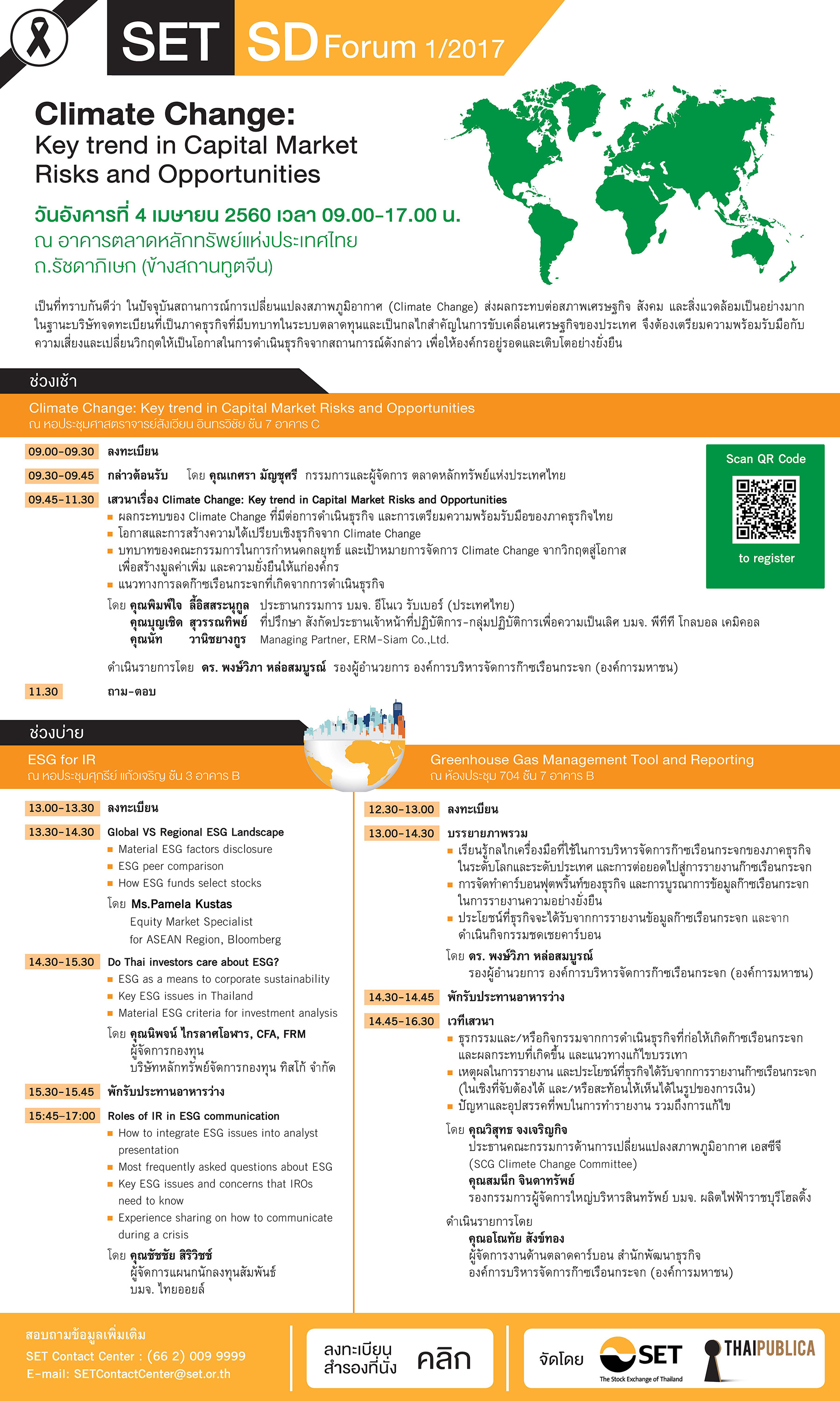สัมมนา Climate Change: Key Trend in Capital Market Risks and Opportunities