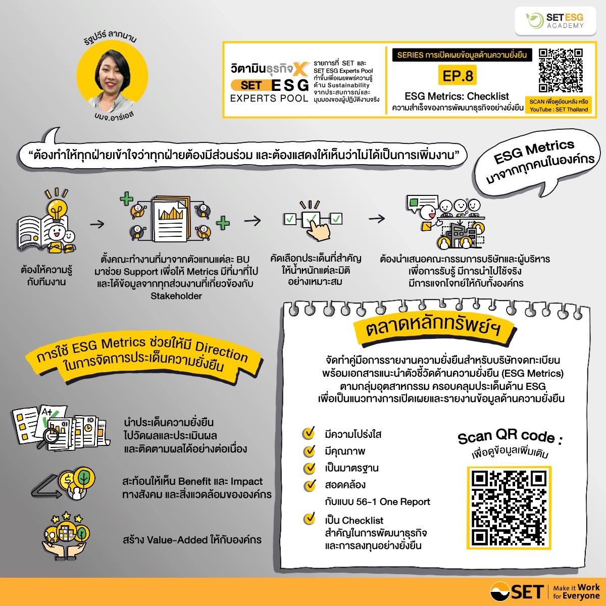 | 8 | Visual Note สรุปความเข้าใจเนื้อหาอย่างง่ายๆ จาก SET ESG Experts Pool : EP.8 | 367.04K | Download |