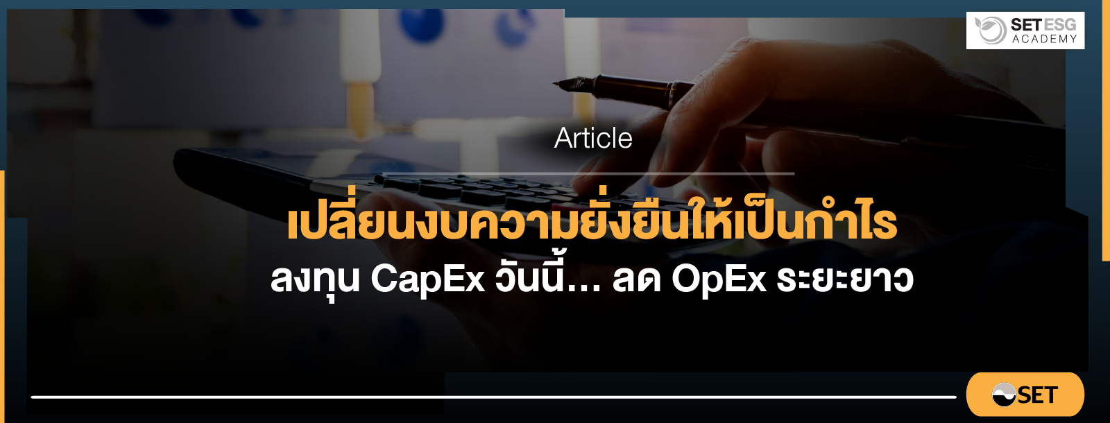 บทความนี้จะนำเสนอแนวคิดที่ว่า การลงทุนในโครงการด้านความยั่งยืนคือการลงทุน (CapEx) ที่มีเป้าหมายทางการเงินชัดเจนและวัดผลได้ หรือพูดอีกแบบหนึ่งคือการลงทุนเพื่อลดต้นทุนการดำเนินงาน (OpEx) ในระยะยาว และช่วยยกระดับความสามารถในการทำกำไร (Profitability) ของกิจการอีกด้วย ถึงเวลาที่ธุรกิจไทยต้องปรับกลยุทธ์เปลี่ยนรายจ่ายให้เป็นการลงทุนที่สร้างผลตอบแทนทั้งตัวเงินและความยั่งยืนไปพร้อมกัน
