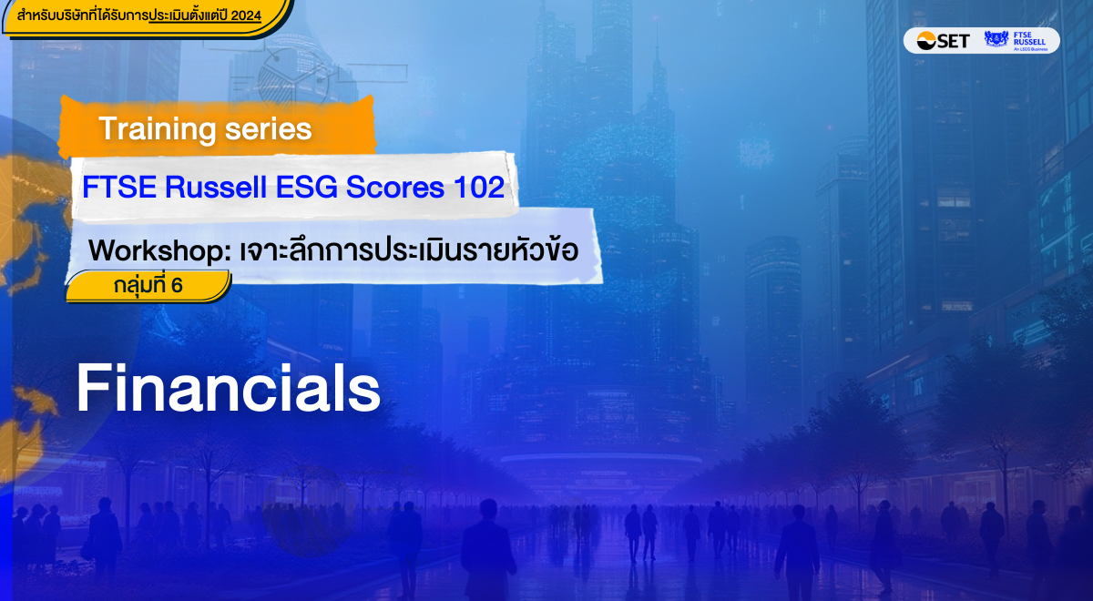 หลักสูตรสำหรับบริษัทจดทะเบียนที่อยู่ใน Coverage ของ FTSE Russell ESG Scores หรือบริษัทจดทะเบียนที่มีความสนใจ หลักสูตรมุ่งเน้นสร้างความรู้ความเข้าใจเกี่ยวกับการประเมิน FTSE Russell ESG Scores เชิงลึก โดยมีรายละเอียดในระดับตัวชี้วัด การเปรียบเทียบกับ SET ESG Ratings รวมถึงกรณีศึกษาจากบริษัทจดทะเบียนต่างประเทศ เพื่อให้บริษัทจดทะเบียนเตรียมความพร้อมและปรับตัวในช่วงการประเมินนำร่อง (ปี 2567 - 2568) ก่อนที่ตลาดหลักทรัพย์ฯ จะประกาศผลการประเมิน FTSE Russell ESG Scores สู่สาธารณะ ตั้งแต่ปี 2569 เป็นต้นไป