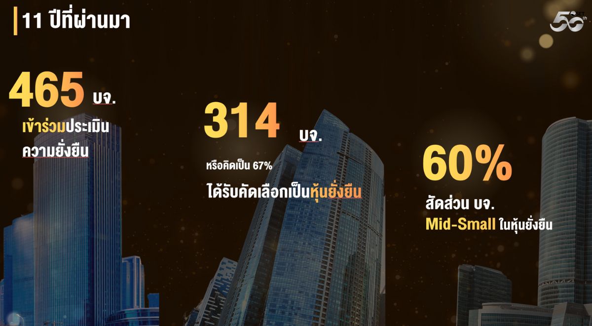 - “หุ้นยั่งยืน” ไม่ใช่แค่รายชื่อของบริษัท แต่เป็นเครื่องมือขับเคลื่อนการดำเนินงานด้านความยั่งยืนของบริษัทจดทะเบียน และเป็นหนึ่งในข้อมูลที่ถูกนำไปใช้ในการลงทุนอย่างกว้างขวาง