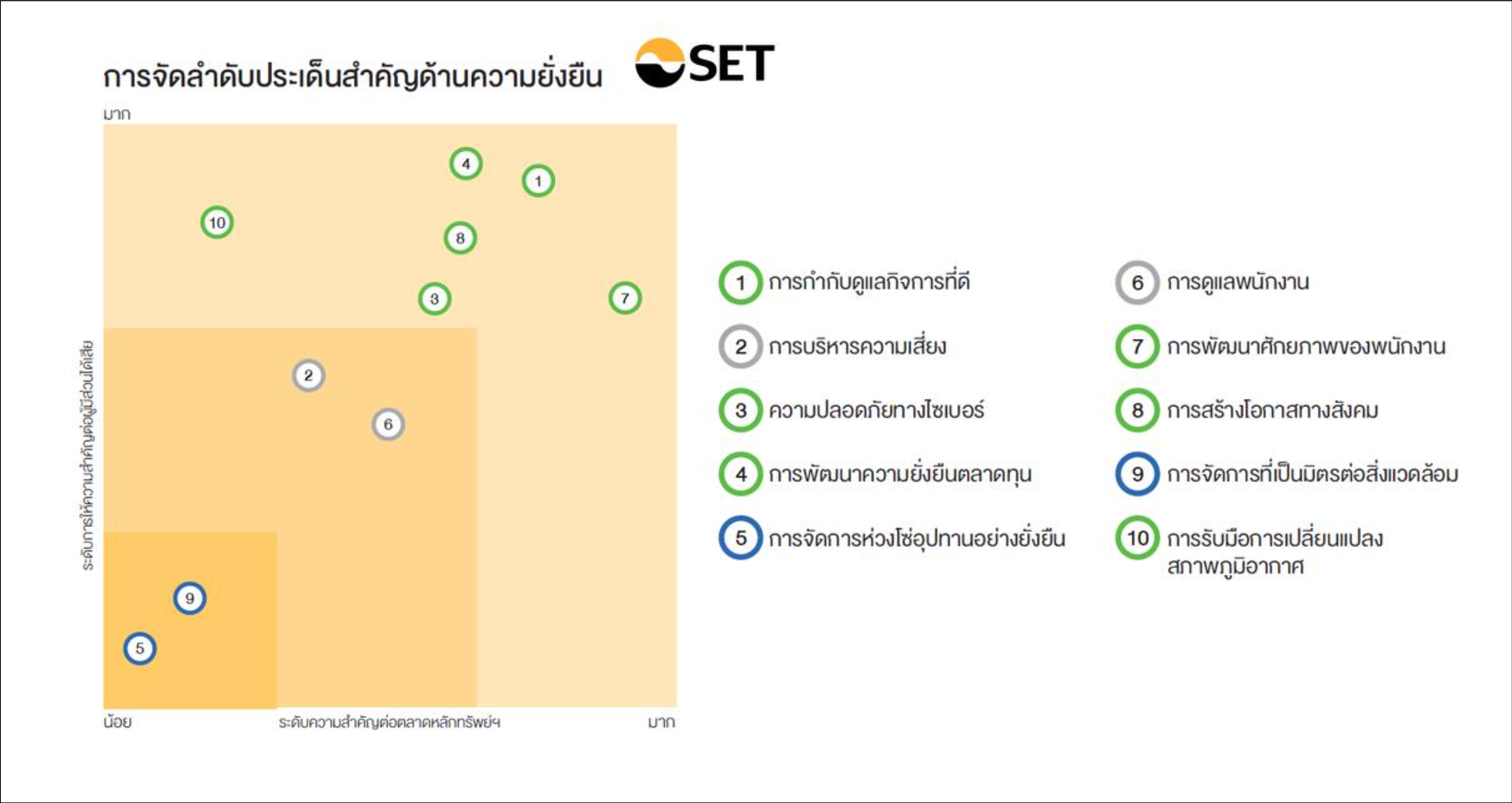 รูปที่ 1 แสดงผลการจัดลำดับประเด็นสำคัญด้านความยั่งยืนของตลาดหลักทรัพย์ฯ