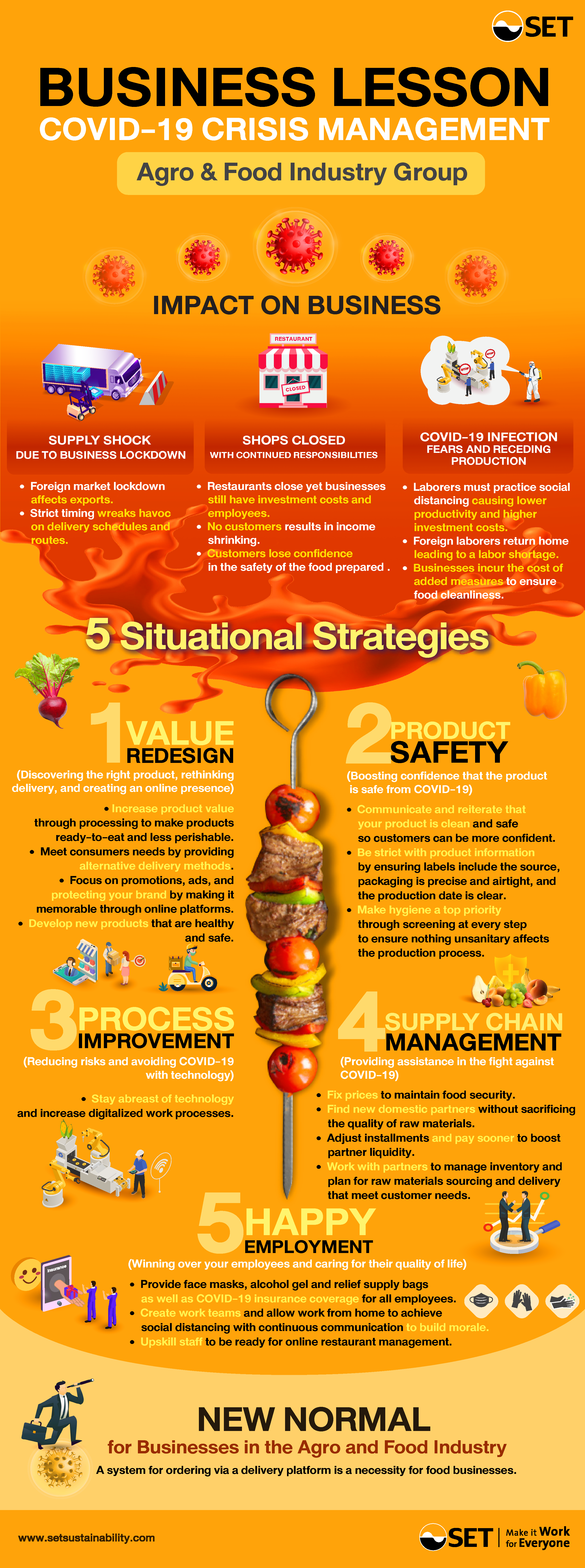 Home Knowledge Libraries Corporate Sustainability บทเรียนธุรกิจฝ่าวิกฤต COVID-19 : กลุ่มธุรกิจเกษตรและอุตสาหกรรมอาหาร Topic All AGM Anti-Corruption Auditing Awards BCG Board Diversity Board Effectiveness Board Evaluation Board Meeting Board Roles & Responsibilities Board Structure Business Strategy CGR Circular Economy Climate Change Code of Conduct Corporate Efficiency Corporate Governance Corporate Secretary Corporate Sustainability Disclosure and Reporting DJSI Employee ESG Assessment ESG Integration Ethics Gender Equality GHG Emission Human Rights Innovation Internal Control Investor Relations Materiality Analysis Operational Efficiency Principle and Guidelines Risk Management SD Focus SD Professional Sharing SDGs SET ESG Ratings Shareholder Social Enterprise Social Investment Sustainability Index Sustainable Banking Sustainable Business Role Models Sustainable Consumption Sustainable Exchange Sustainable Finance Sustainable Investment Sustainable Procurement Sustainable Supply Chain THSI Training & Workshop Whistleblowing ทันกระแสธุรกิจยั่งยืน บทเรียนธุรกิจฝ่าวิกฤต COVID-19 : กลุ่มธุรกิจเกษตรและอุตสาหกรรมอาหาร วิกฤตเศรษฐกิจจาก COVID-19 ส่งผลกระทบต่อทุกธุรกิจ รุนแรงมากบ้าง น้อยบ้าง เคล็ดลับการพัฒนาเพื่อความยั่งยืนแบบใด ที่จะนำพาธุรกิจเกษตรและอุตสาหกรรมอาหารฝ่าวิกฤตไปได้ (ถอดบทเรียนจากบริษัทจดทะเบียนในตลาดหลักทรัพย์แห่งประเทศไทย) #FileSizeDownload 1 บทเรียนธุรกิจ ฝ่าวิกฤต COVID-19: กลุ่มธุรกิจเกษตรและอุตสาหกรรมอาหาร (English Version) 2.12M Download 2 บทเรียนธุรกิจ ฝ่าวิกฤต COVID-19: กลุ่มธุรกิจเกษตรและอุตสาหกรรมอาหาร (Thai Version) 5.4M Download