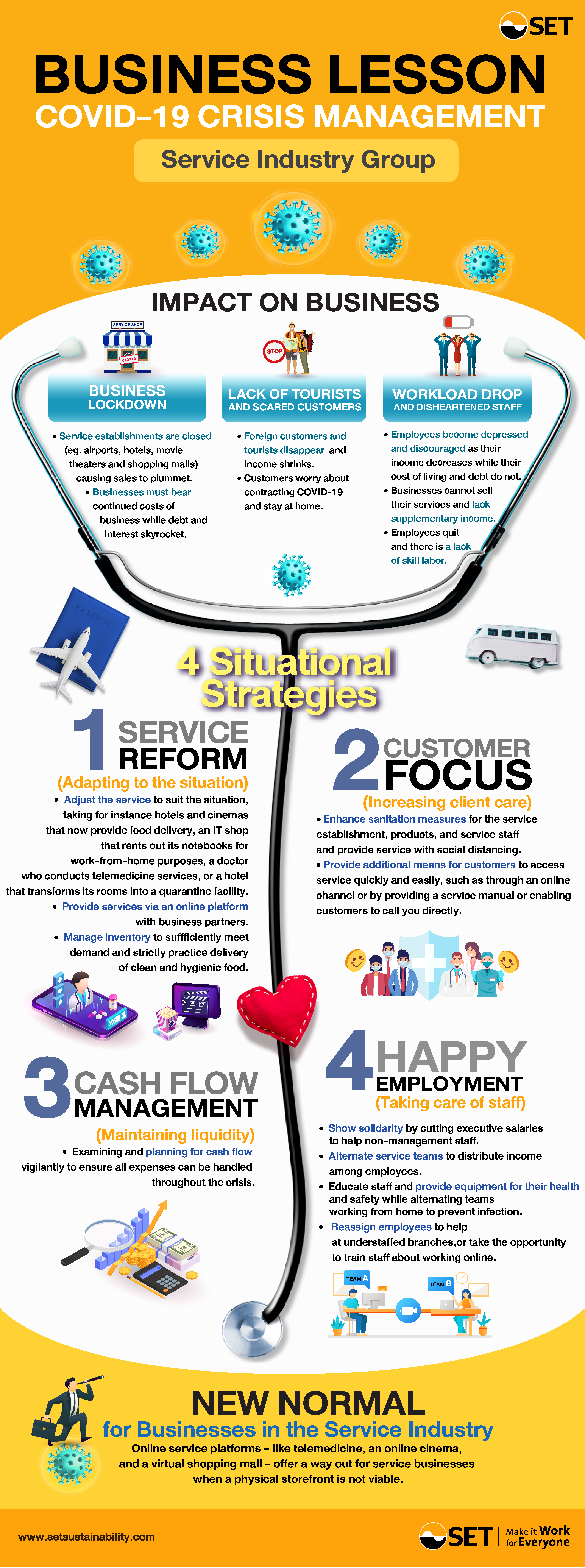 Home Knowledge Libraries Corporate Sustainability บทเรียนธุรกิจฝ่าวิกฤต COVID-19 : กลุ่มธุรกิจบริการ Topic All AGM Anti-Corruption Auditing Awards BCG Board Diversity Board Effectiveness Board Evaluation Board Meeting Board Roles & Responsibilities Board Structure Business Strategy CGR Circular Economy Climate Change Code of Conduct Corporate Efficiency Corporate Governance Corporate Secretary Corporate Sustainability Disclosure and Reporting DJSI Employee ESG Assessment ESG Integration Ethics Gender Equality GHG Emission Human Rights Innovation Internal Control Investor Relations Materiality Analysis Operational Efficiency Principle and Guidelines Risk Management SD Focus SD Professional Sharing SDGs SET ESG Ratings Shareholder Social Enterprise Social Investment Sustainability Index Sustainable Banking Sustainable Business Role Models Sustainable Consumption Sustainable Exchange Sustainable Finance Sustainable Investment Sustainable Procurement Sustainable Supply Chain THSI Training & Workshop Whistleblowing ทันกระแสธุรกิจยั่งยืน บทเรียนธุรกิจฝ่าวิกฤต COVID-19 : กลุ่มธุรกิจบริการ วิกฤตเศรษฐกิจจาก COVID-19 ส่งผลกระทบต่อทุกธุรกิจ รุนแรงมากบ้าง น้อยบ้าง เคล็ดลับการพัฒนาเพื่อความยั่งยืนแบบใด ที่จะนำพาธุรกิจบริการฝ่าวิกฤตไปได้ (ถอดบทเรียนจากบริษัทจดทะเบียนในตลาดหลักทรัพย์แห่งประเทศไทย) #FileSizeDownload 1 บทเรียนธุรกิจ ฝ่าวิกฤต COVID-19: กลุ่มธุรกิจบริการ (English Version) 1.86M Download 2 บทเรียนธุรกิจ ฝ่าวิกฤต COVID-19: กลุ่มธุรกิจบริการ (Thai Version) 3.43M Download