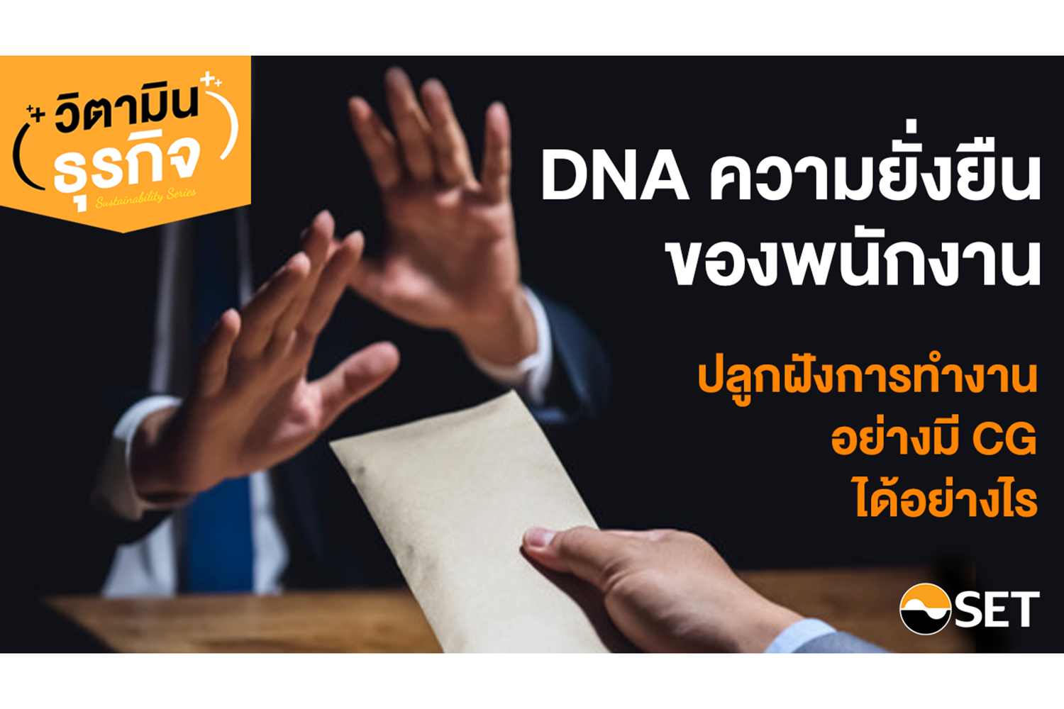 ตลาดหลักทรัพย์แห่งประเทศไทย จึงจัดทำ ชุดความรู้ด้านความยั่งยืนเบื้องต้นสำหรับพนักงาน (Sustainability DNA for Employees) สำหรับธุรกิจในภาคตลาดทุนและผู้ประกอบการทั่วไป เพื่อนำไปประยุกต์ใช้เป็นเครื่องมือในการพัฒนาพื้นฐานความรู้ความเข้าใจ เกี่ยวกับการทำงานตามแนวทางความยั่งยืน และเป็นเครื่องมือที่สามารถนำไปปรับใช้อย่างสอดรับกับการทำงานในชีวิตประจำวันให้แก่พนักงานได้ในทุกระดับ โดยมีทั้งความรู้สำหรับพนักงานทั่วไป และพนักงานที่มีส่วนเกี่ยวข้องกับการขับเคลื่อนกลยุทธ์ด้านความยั่งยืนขององค์กร