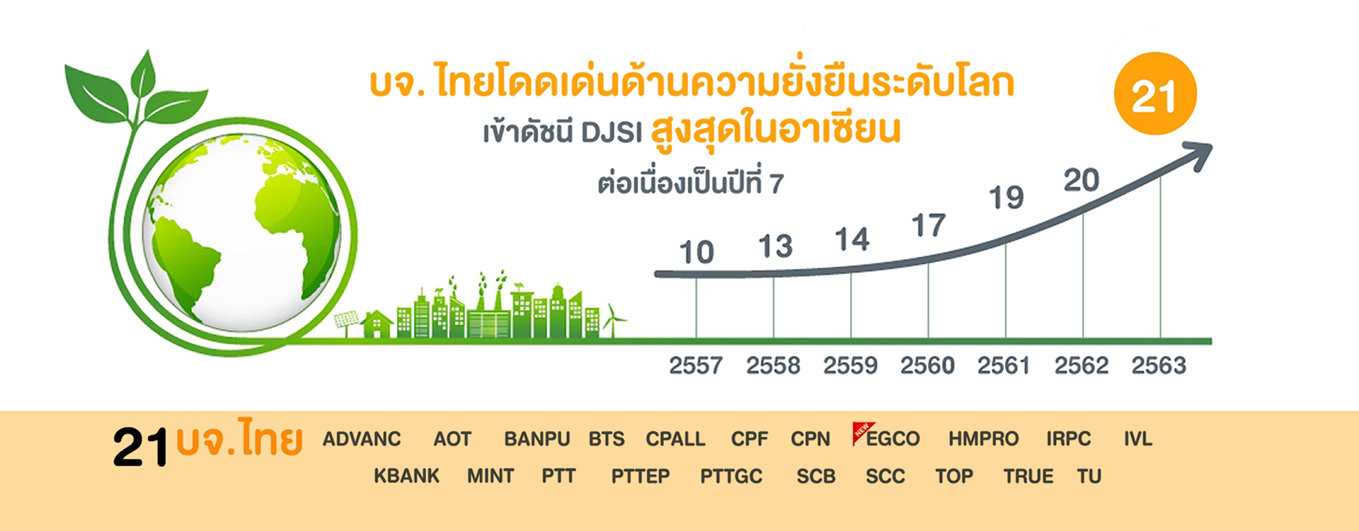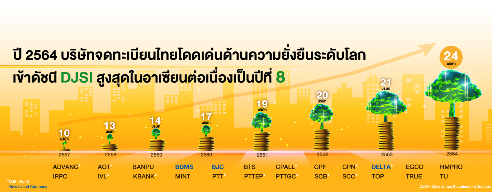 รายชื่อบริษัทจดทะเบียนที่เป็นสมาชิก และได้รับเชิญเข้าร่วมประเมินดัชนี Dow Jones Sustainability Indices (DJSI) 2564 (Click)
