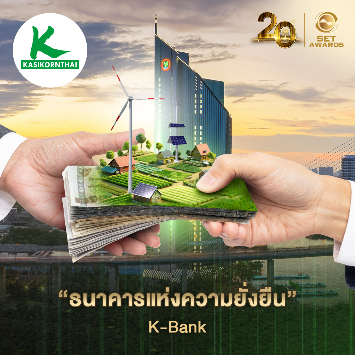 KBANK “ธนาคารแห่งความยั่งยืน” Bank of Sustainability ที่เน้นการสร้างคุณค่าด้วยการให้ความสำคัญกับผู้มีส่วนได้เสียรอบด้าน โดยเฉพาะการเพิ่มพลังธุรกิจของลูกค้าให้สามารถขับเคลื่อนด้วยนวัตกรรม ควบคู่ไปกับกลยุทธ์ด้าน ESGจนได้รับรางวัล Best Sustainability Awards (ปี2565), Highly Commended in Sustainability Awards (ปี 2561-2562, 2564) จากงาน SET Awards